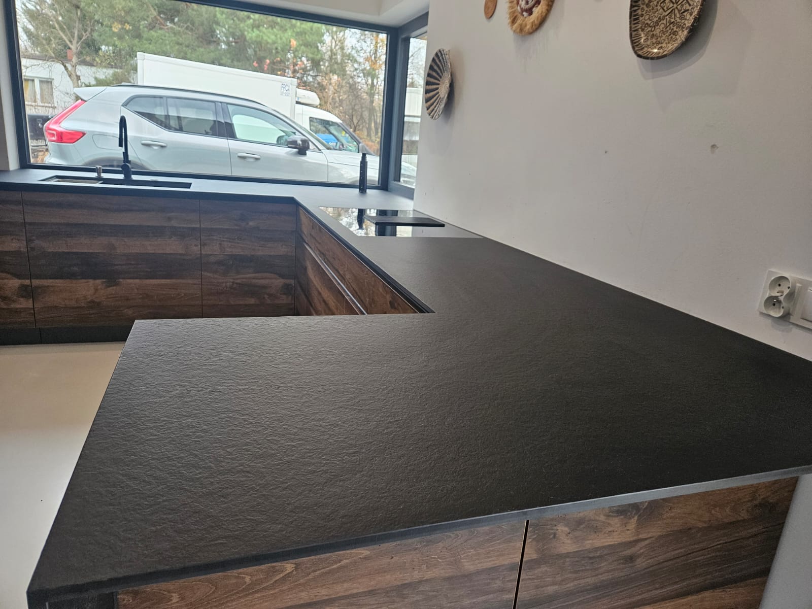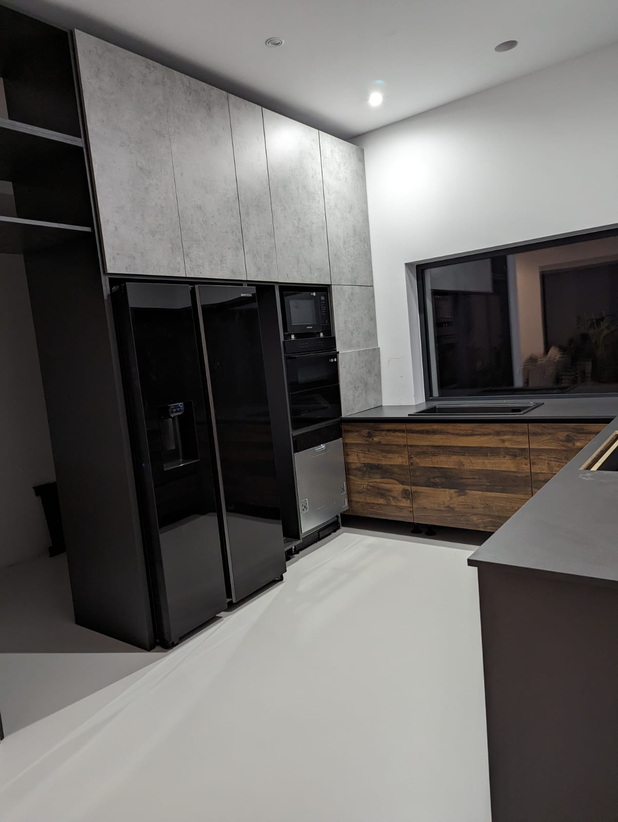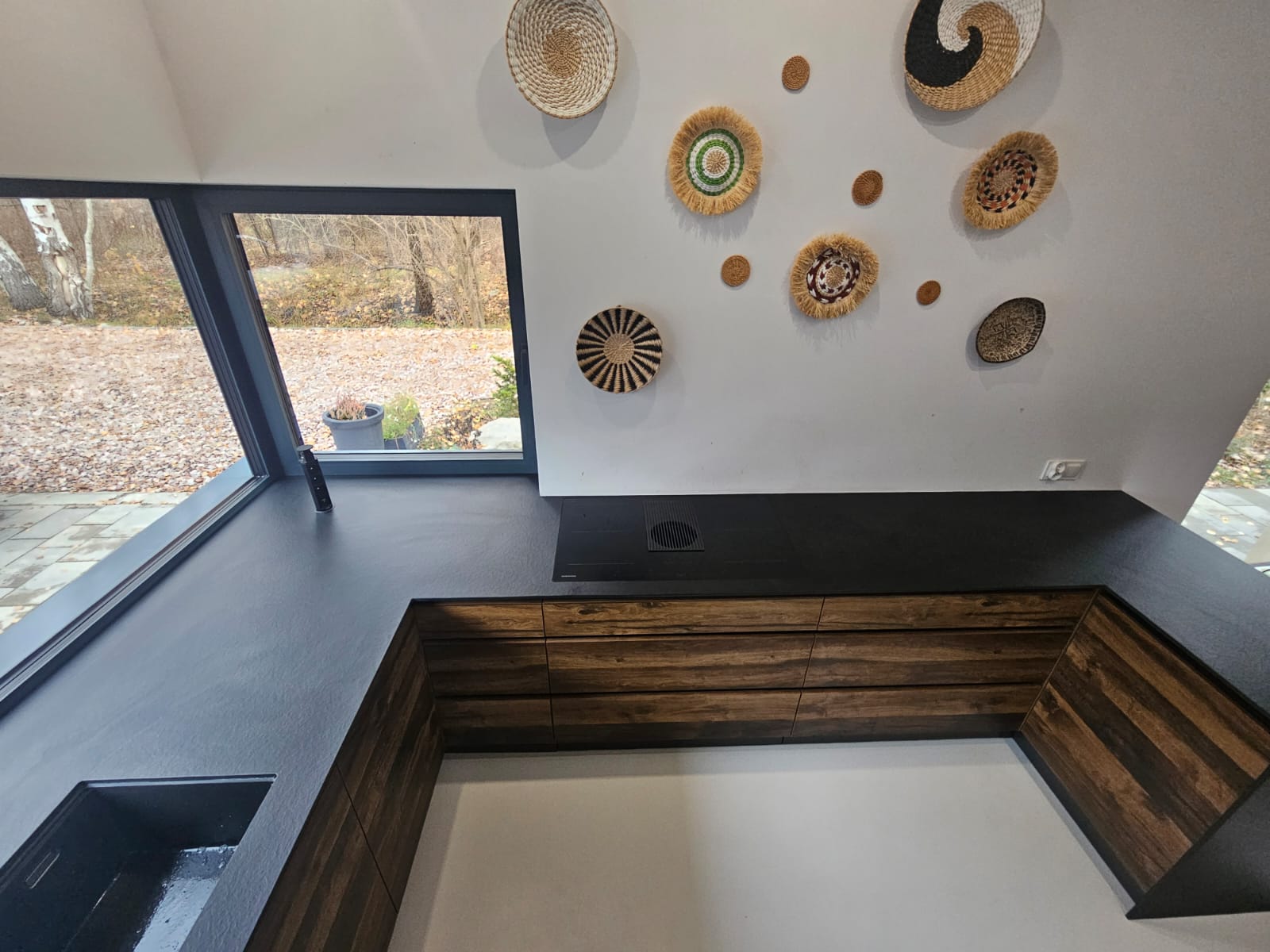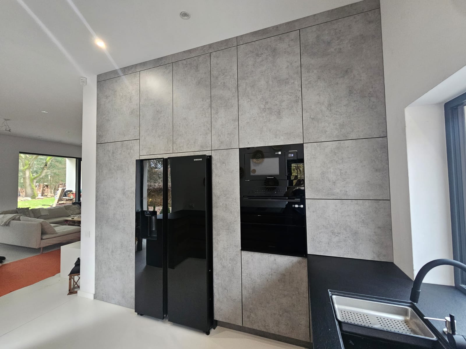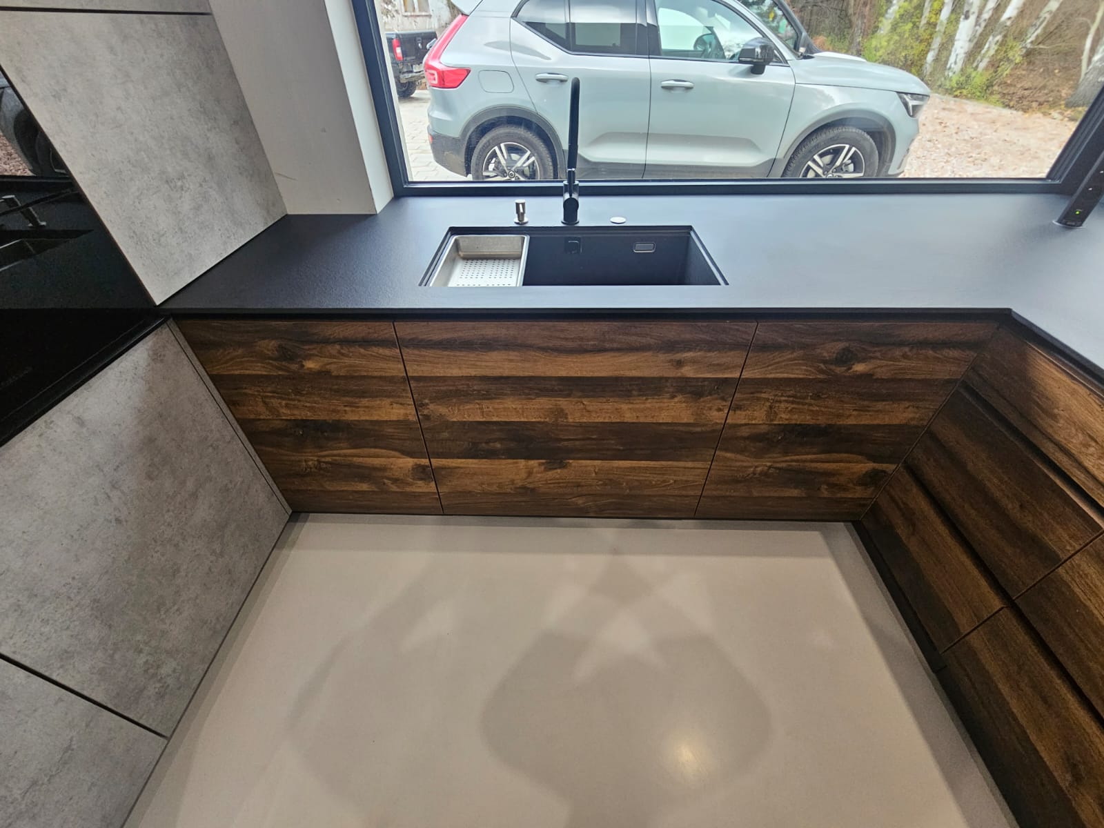 In der Küche haben wir laminierte Platten der Marke Egger verwendet:
